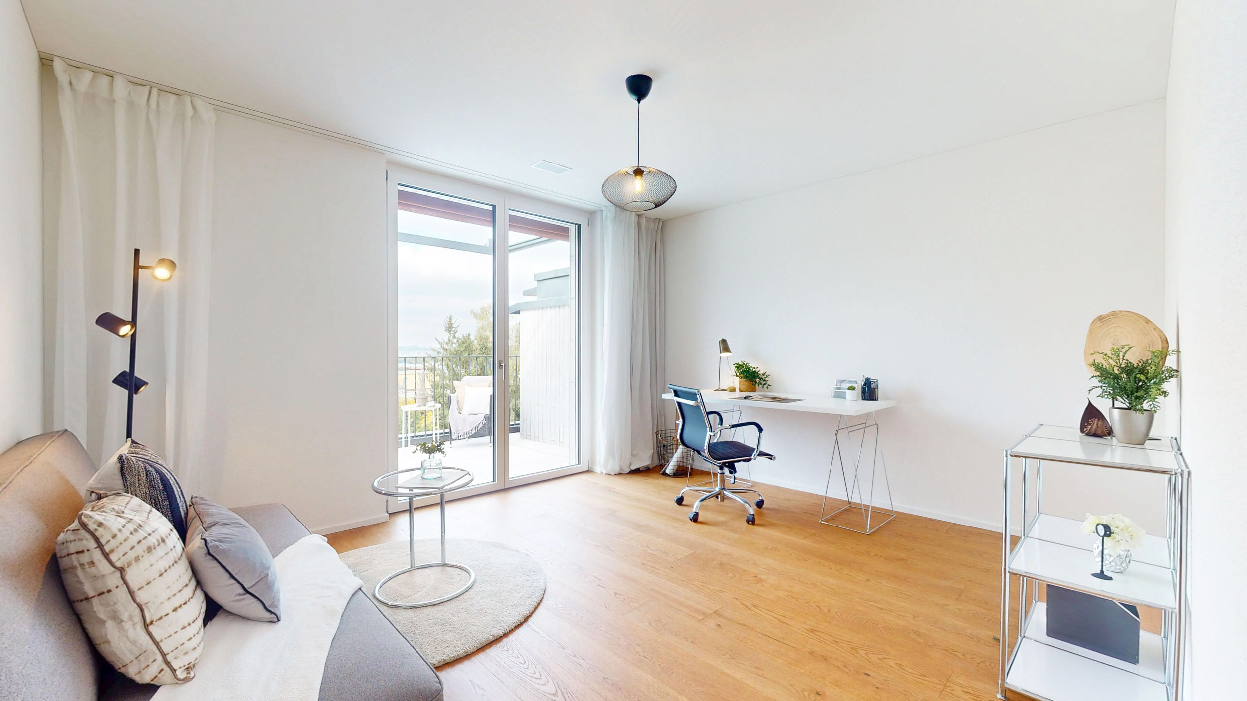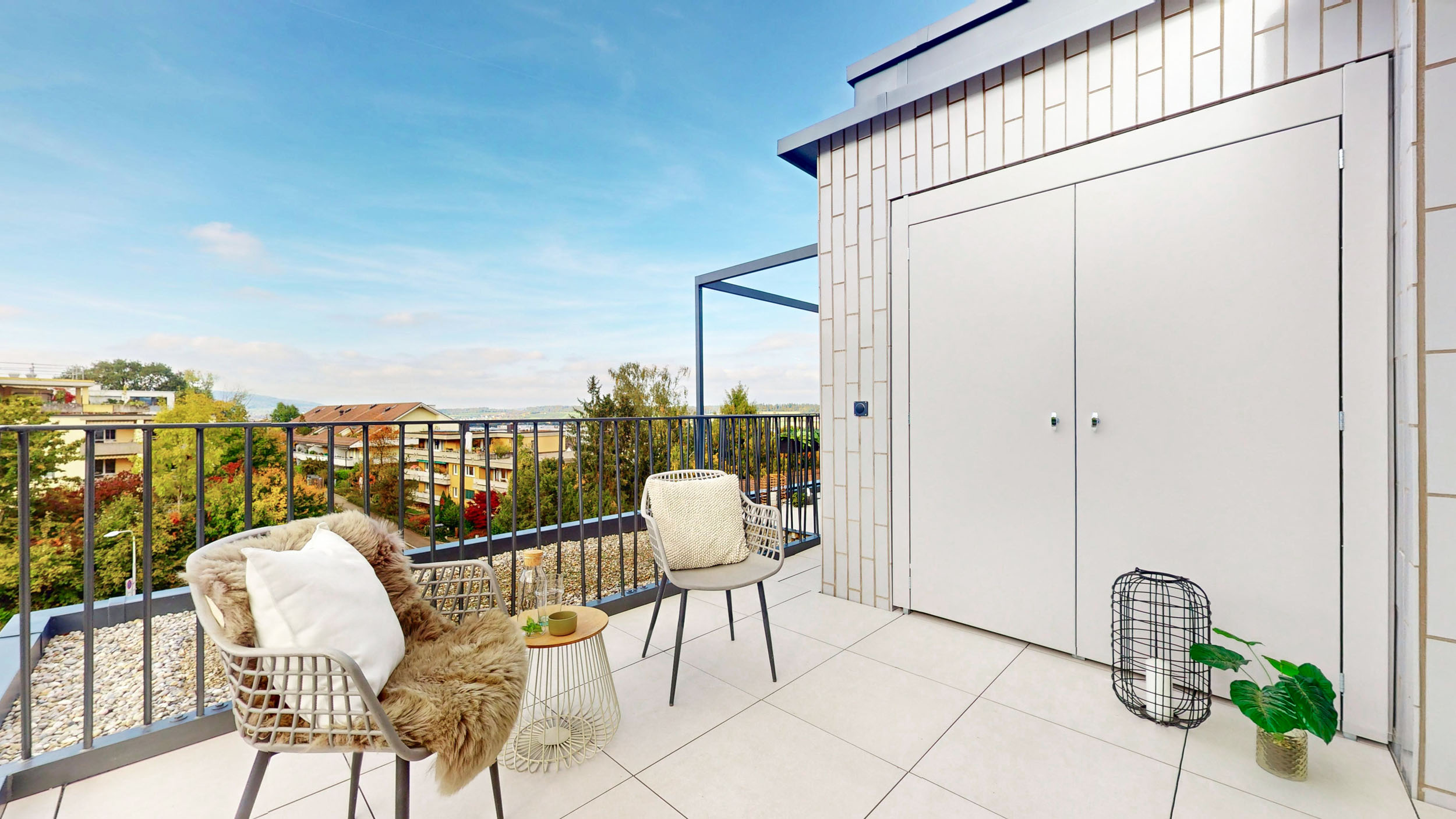 Um die Sonnentage perfekt zu nutzen, bieten die Wohnungen diverse Beschattungsmöglichkeiten. Elektrobetriebene Vertikalmarkisen an allen Fenstern dienen nebst Abdunklung auch als Sichtschutz.